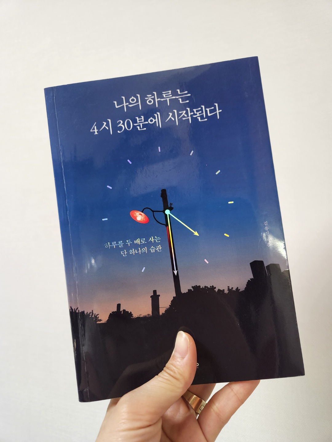 나의 하루는 4시 30분에 시작된다 책은 새벽에 일어나면 하루를 두 배로 살 수 있다고 말하는 김유진 변호사의 책입니다. 저자가 새벽 기상을 통해 어떤 것들을 이루었는지와 어떤 새벽 시간을 보내는지에 대해 적혀 있습니다. 일찍 일어나는 동기부여가 될 수 있는 책이며 가볍고 쉽게 술술 읽혀나갈 수 있는 책입니다.