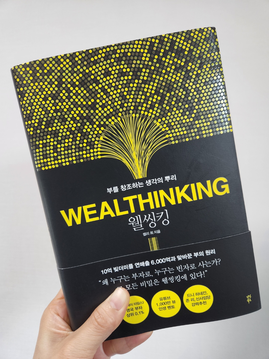 저자는 지난번 제가 소개했던 책 ‘파리에서 도시락을 파는 여자’를 지었던 켈리 차입니다. 제가 존경하는 켈리 최의 두 번째 책을 소개하게 되어 너무 기쁩니다. 켈리 최는 본인과 같이 어려운 상황 속에서도 큰 부를 이루어낸 1000여 명의 부자들의 습관과 생각을 연구하고 실천한 결과, 유럽 12개국에 1200개 매장을 소유하고 있고 연 매출 6,000억 원의 고속 성장을 한 글로벌 기업 ‘켈리델리’를 일구어 냈습니다. 현재는 본인의 경영 노하우와 부자 마인드를 세상에 알리기 위해 ‘웰씽킹 아카데미’를 설립하여 많은 사람들이 꿈을 이룰 수 있도록 돕고 있습니다. 이 책의 저자 수익금은 많은 사람들의 꿈을 이루는 일에 전액 기부됩니다. 켈리 최가 말하는 웰씽킹은 부의 생각을 의미하며, 부는 돈뿐만 아니라 건강, 행복의 풍요를 의미합니다.